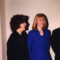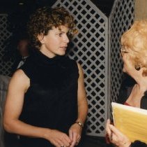 Digital Photograph,1997. A colour photograph, candid, of inductees Marnie McBean (left) and Kathleen Heddle (right) at the 1997 induction reception.