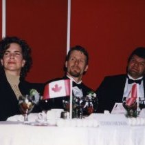 Digital Photograph,1997.A colour photograph of Marnie McBain, Larry Cain, and Marcel Dionne seated at a table during the 1997 induction ceremony.