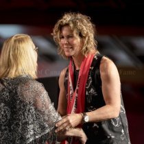 Photo, colour, 2019 Order of Sport Awards: Janice Smith presenting the Order of Sport scarf to Marnie McBean.